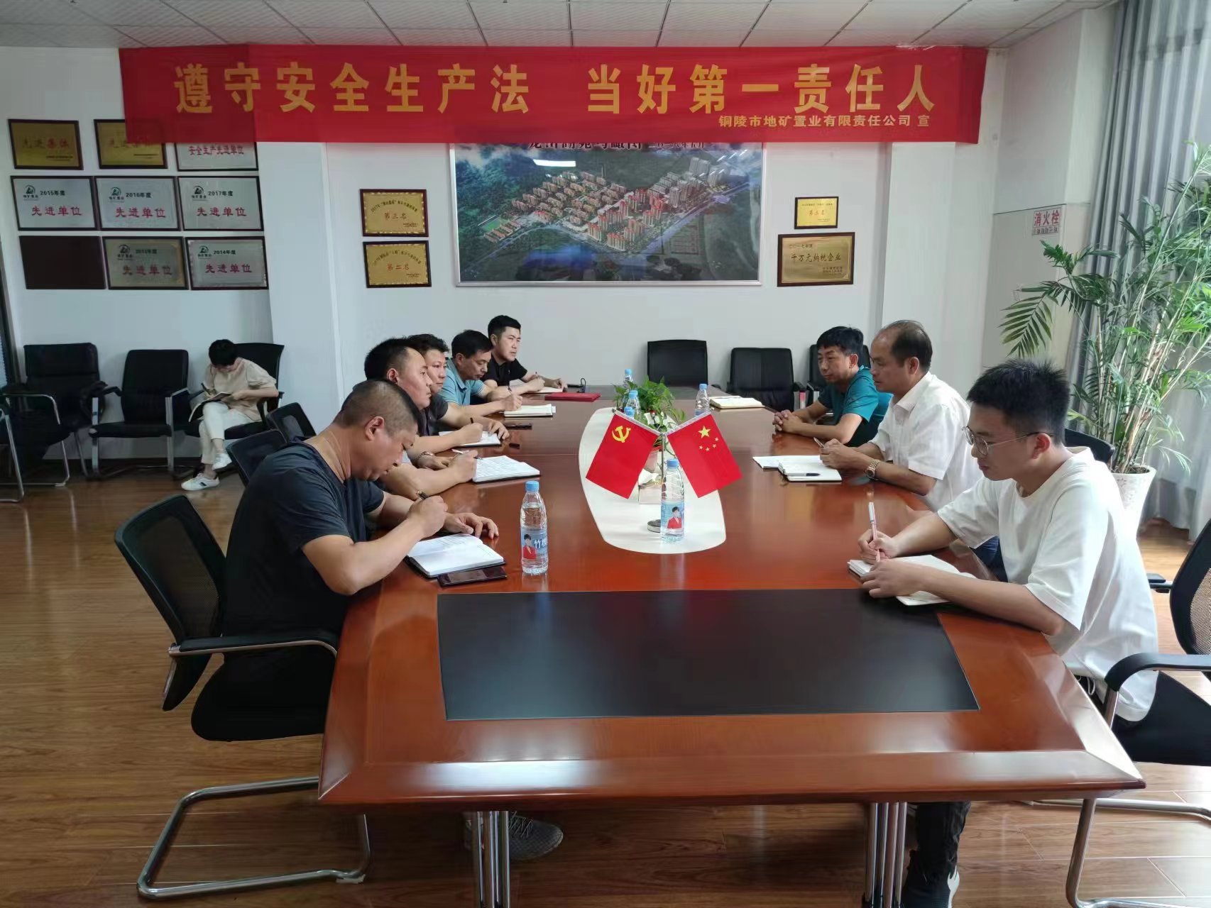 6月14日,局審計(jì)處處長何朝陽,集團(tuán)公司黨委委員、董事長、總經(jīng)理汪冬生,集團(tuán)公司黨委委員連長城等一行赴銅陵地礦置業(yè)公司檢查指導(dǎo)工作,查看“安全生產(chǎn)月”活動開展情況。