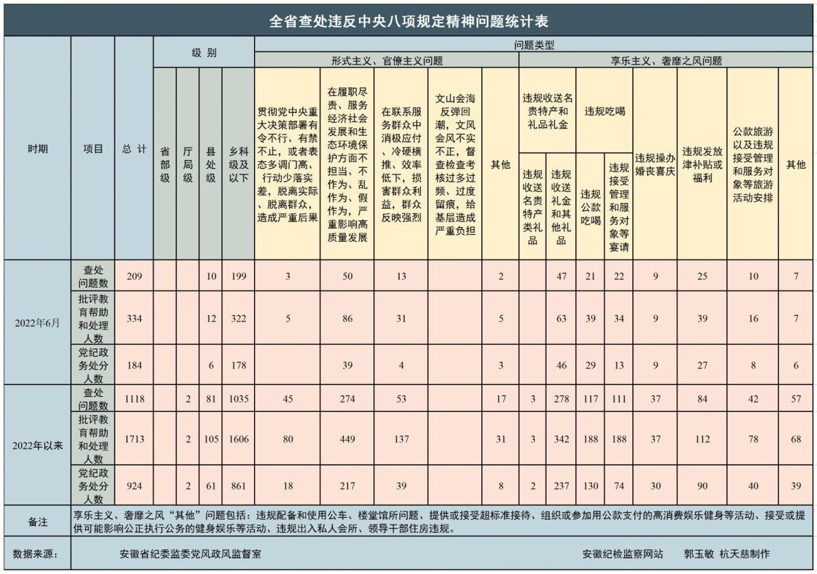 2022年上半年全省查處違反中央八項規定精神問題1118起