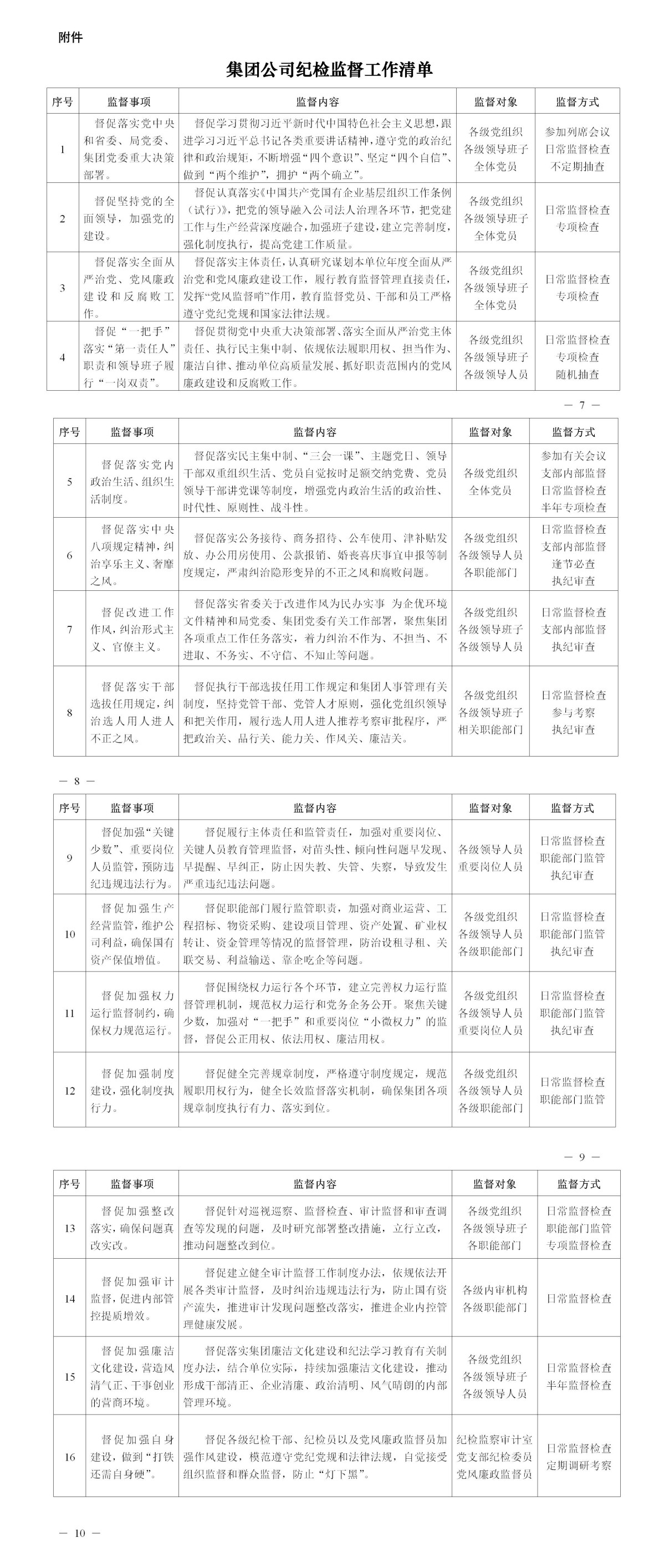 附件:集團公司紀(jì)檢監(jiān)督工作清單