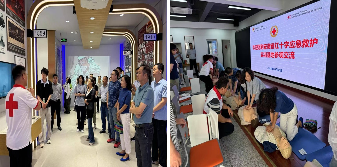 1:集團公司本部職工赴省紅十字應急救援救護實訓基地,現場培訓心肺復蘇(CPR)、自動體外除顫(AED)、高層建筑火災逃生和氣道異物梗阻等急救技能,切實將“個個會應急”落實到實處。